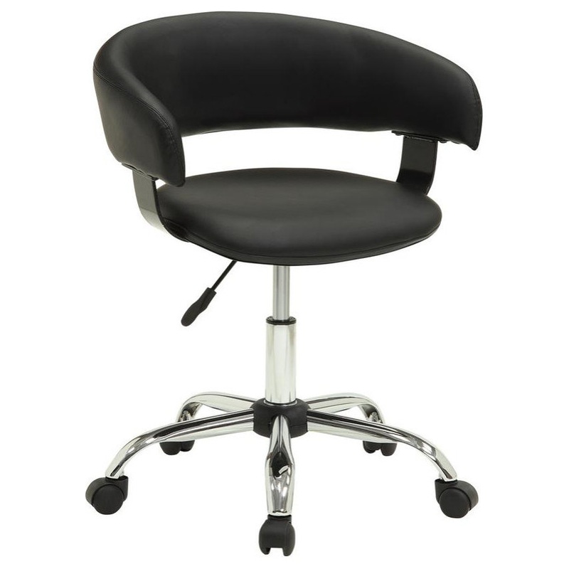 The Black Gas Lift Desk Chair is all about style and comfort. A luxurious plush swivel seat is upholstered in a rich black faux leather, while a curved seat back provides added comfort. The gas lift gives easy positioning options and the casters provide mo