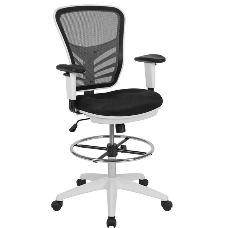 Discover a new way of office seating with an ergonomic drafting chair. With a rise in standing desks you need a compatible office chair to travel the distance with you. Enjoy the comforts of an ergonomic office chair in a taller frame to meet the needs of students and professionals working at above average desk heights. If you’re seeking an office chair to work at above standard heights in environments such as banks, architectural firms, art studios and other creative spaces a mesh back drafting stool is your perfect match. This draft chair features a ventilated mesh back with lumbar support to keep you cool along with a convenient lever to adjust the seat height and lock the seat in place to prevent you from rocking. Turning the tilt tension adjustment knob increases or decreases the amount of force needed to rock or recline. From standing desks to drafting desks this ergonomic drafting chair with contoured padded swivel seat will provide you with the comfort that you need to suit your work environment. Let this tall task chair deliver comfort while you scratch items off your to-do list. [HL-0001-1CWHITE-GG]