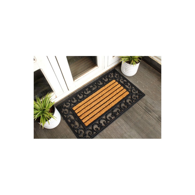 This light rubber and coir combination doormat will add style to any door. Rugged,nonslipblack rubber outdoor edged mat has a made from the highest quality all natural coconut fiber that will catch dirt and debris to get shoes clean. The doormat measures a