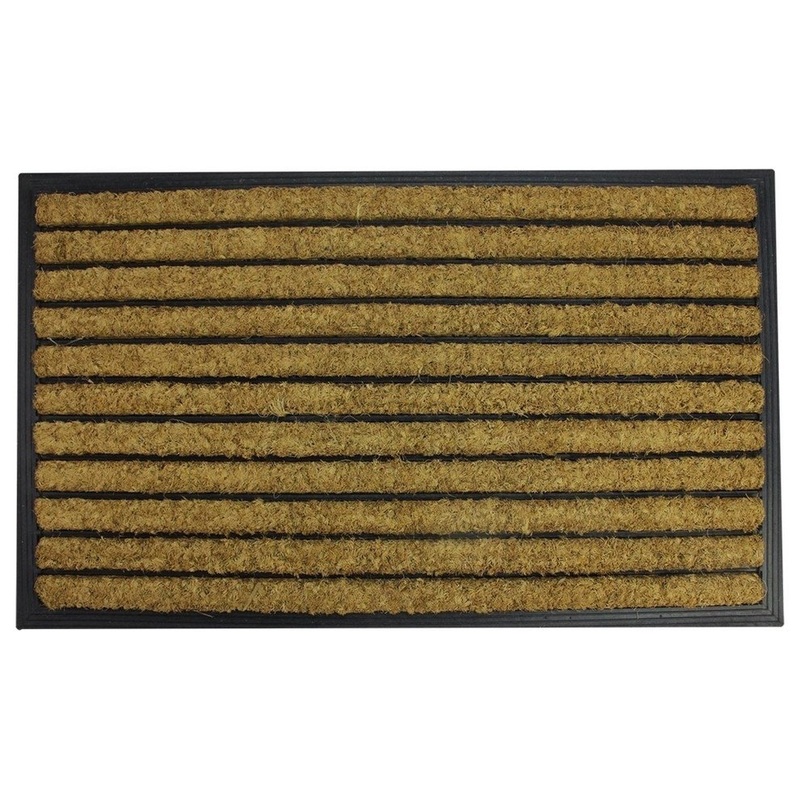 -Compliment your entryway with this door mat accented with a decorative stripe pattern -Color(s): Black natural -Non-skid durable backing which helps to keep your door mat securely in place -For indoor or outdoor use -Care instructions: Rinse with hose and