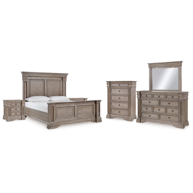 Discover something exceptional with this bedroom package. Its impressive silhouettes offer a casual traditional aesthetic, embodied by classic-inspired decorative columns and a relaxed grayish brown finish. Beautifully designed, the set exudes the calming