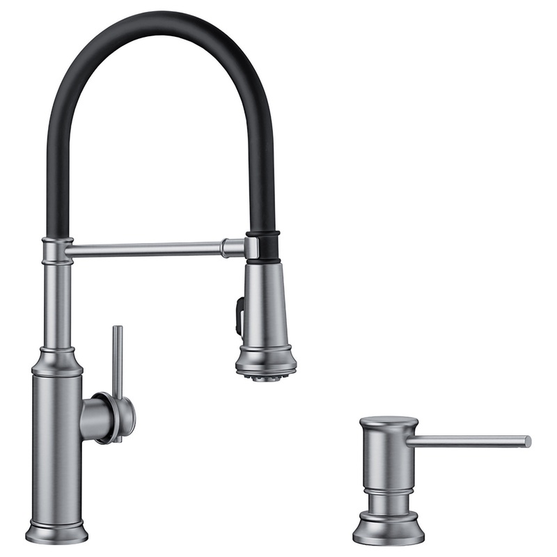 Blanco Empressa Semi-Pro Kitchen Faucet With Soap Dispenser, Stainless, 9″x2″x19.38″ – Transitional – Kitchen Faucets – by Transolid