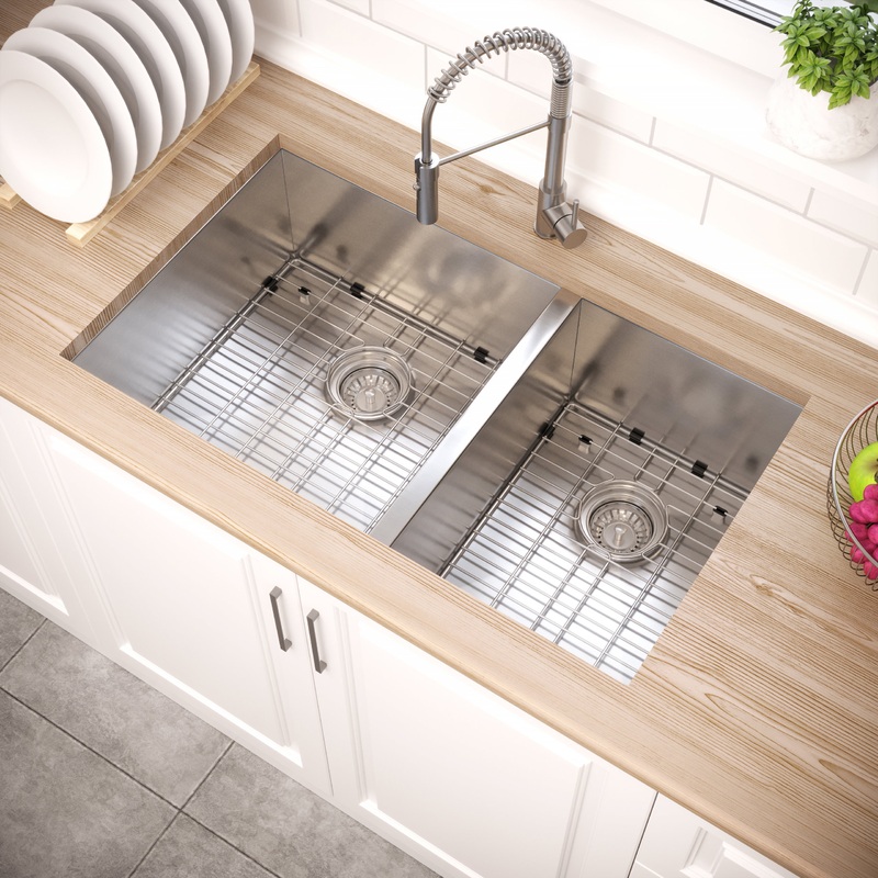 Blue Ocean 32″ KSR122L 16 Gauge Stainless Steel Undermount Kitchen Sink – Contemporary – Kitchen Sinks – by The Home Budget Houseware Inc