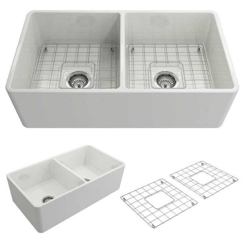 Classico 33D White Fireclay Farmhouse Sink Double Bowl With FREE Grid and Strainer by Bocchi Bring some classic European flair into your kitchen with this Bocchi Classico farmhouse sink. Designed in Italy and manufactured in Turkey, Bocchi is a truly trust