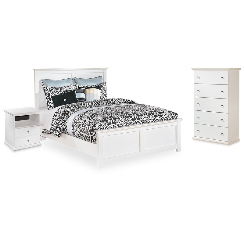 Clean, crisp and fresh. This full panel bed with chest and nightstand masters the art of understated elegance. Whether youre looking to exude an air of cottage chic flair or a modern classic vibe, this easy-to-love look makes just the right statement.
