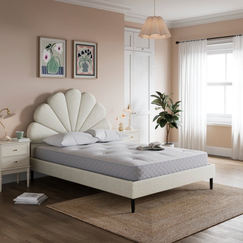 Upholstered bedSoft boucle fabricPetal detailingBring a touch of elegance and comfort to your bedroom with this beautifully upholstered bed. Wrapped in a soft, textured boucl fabric, it offers a cosy, inviting feel thats perfect for winding down in style.