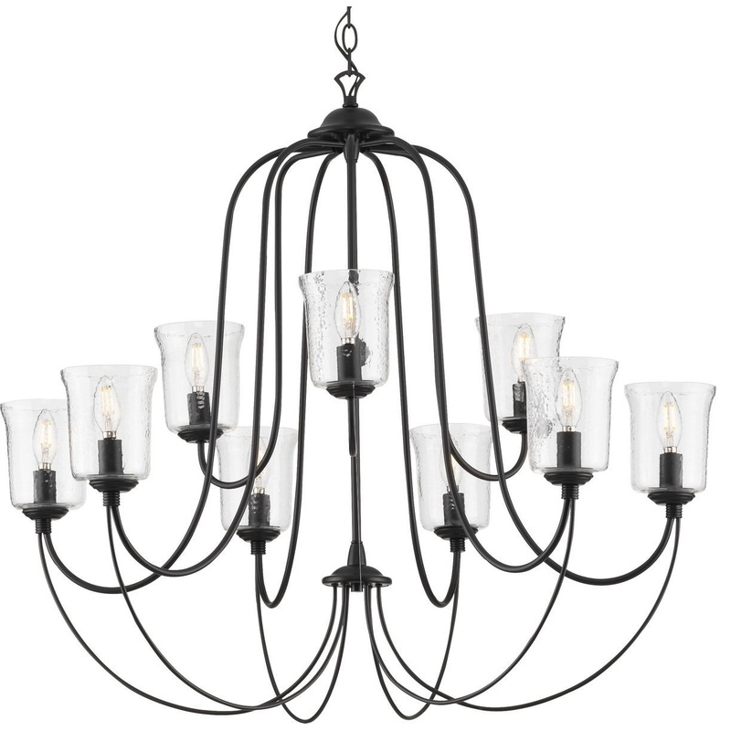 Beautiful lighting will appeal to both your classic taste and your artistic spirit with this chandelier. Wandering eyes will focus on clear, chiseled glass shades as they offer an air of refinery. Handsome light bases with dainty, sophisticated curved arms support elegant light bases. The frame is coated in a classic black finish to complete the versatile, eye-catching design.