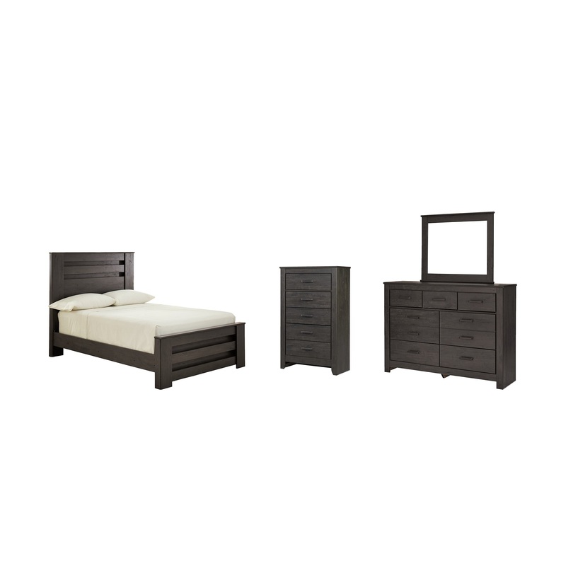 Brinxton Full Panel Bed with Mirrored Dresser and Chest