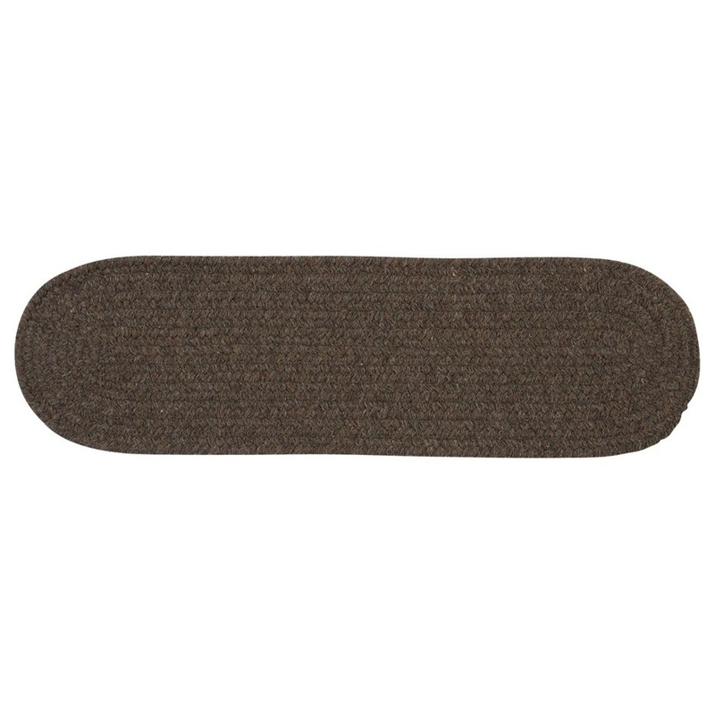 Sometimes simple is best. In these wool blend, braided, oval stair treads, yarns in warm, inviting colors create a simple accent and sense of home. -Braided -Stair Tread -Solid -Wool -Reversible -Made in USA. -Made-to-Order -Color: Bark -Material: 65% Poly