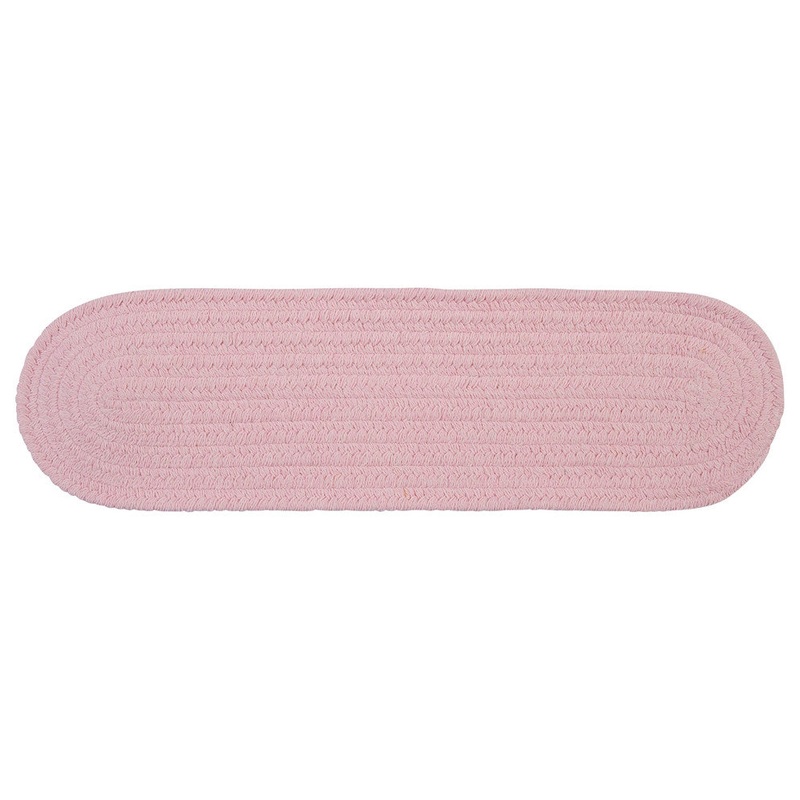 Sometimes simple is best. In these wool blend, braided, oval stair treads, yarns in warm, inviting colors create a simple accent and sense of home. -Braided -Stair Tread -Solid -Wool -Reversible -Made in USA. -Made-to-Order -Color: Blush Pink -Material: 65