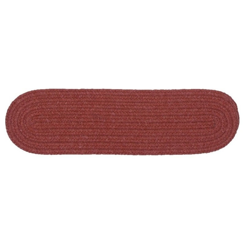 Sometimes simple is best. In these wool blend, braided, oval stair treads, yarns in warm, inviting colors create a simple accent and sense of home. -Braided -Stair Tread -Solid -Wool -Reversible -Made in USA. -Made-to-Order -Color: Rosewood -Material: 65%