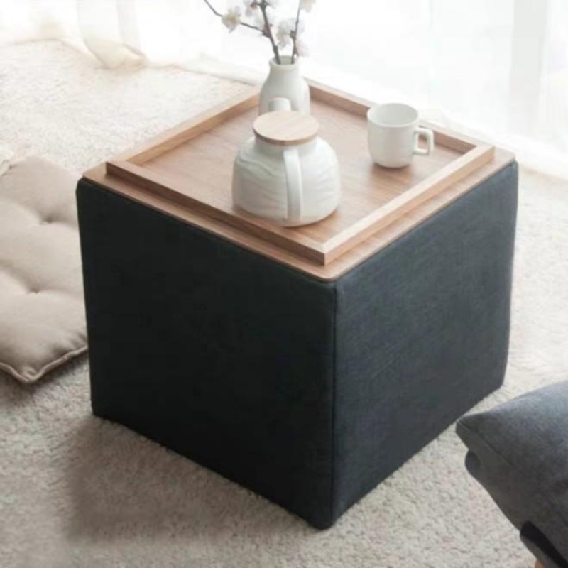 A one of its kind side table topped with a solid wood tray for your evening glass of wine, this unique design converts into a comfortable fabric stool for large get togethers.