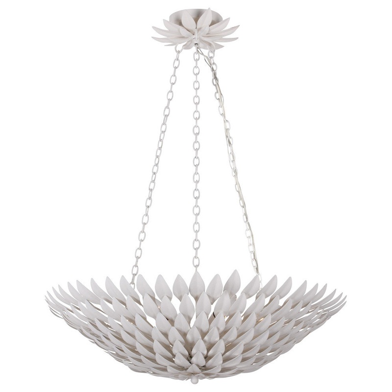 Layers of individual wrought iron leaves deliver a stunning, unique and functional light . The tailored elegance of the shimmering metallic florals are perfect for a transitional home though versatile enough to be incorporated into any modern design. While