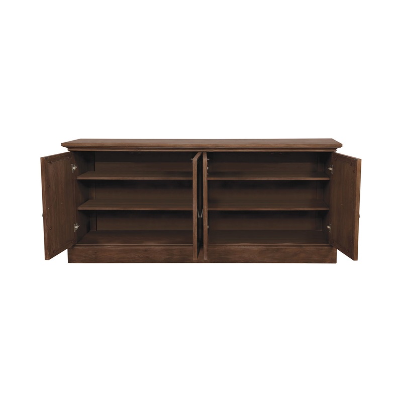 Complete your Brockway collection dining ensemble with the stylish, refined presence of this wood server. Offering four mirrored doors, the server opens to reveal superb storage space for dinner and serveware. Crafted in wood, the sideboard features a rich