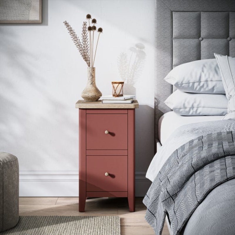 Part of the newly updated Bromley range, this slim bedside table is thoughtfully designed to bring refined style and smart functionality to compact spaces. Its slender profile makes it ideal for smaller bedrooms or tight corners, while the blend of modern lines and traditional country charm gives it timeless appeal. The updated finish adds a fresh, contemporary twist to the classic design, making it easy to integrate into a variety of interiors. For added versatility, it comes with both wooden and metal handles, allowing you to customise the look to suit your personal style.