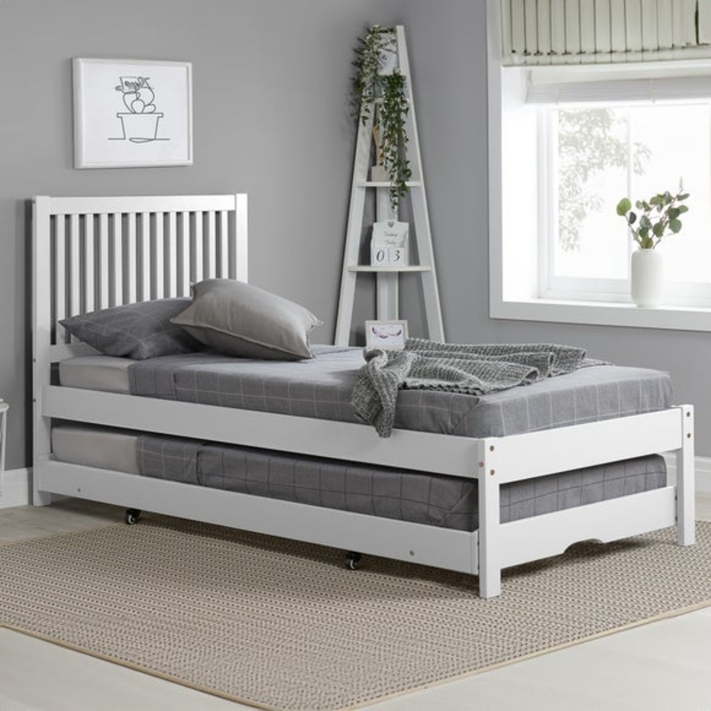 Modern trundle bed frame2 x Single BedsSprung slatted baseThis trundle beds framework conceals a hidden trundle bed for additional sleeping space. The pull-out trundle is equipped with castors for easy manoeuvrability and can be used flat or upright. With