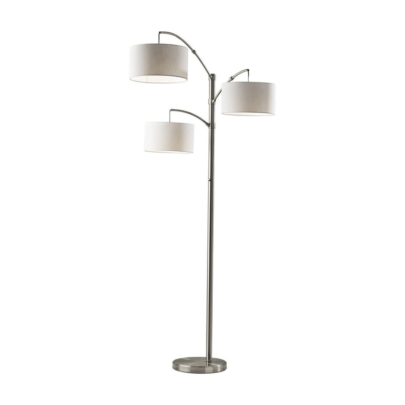 Add an upscale feel to your space with the Cabo Arc floor lamp that effortlessly complements urban, industrial, or mid-century modern decor. The clean lines and long arms of this 82 tall lamp makes it the perfect light source for reading in a recliner or working at a desk, while its slender design makes it easy to position near love seats, couches, or side tables. The 13.75 round brushed steel base provides stability, while the clean lines in brushed steel add a modern, minimalist touch. The brushed steel finish continues through the pole and trio of arms. For maximum versatility, the lamp features three arms, each topped with a 100W bulb (not included) and textured white fabric drum shade. The arms can all be swiveled and repositioned from the base, allowing you to direct the light wherever it’s needed. Operated by a rotary switch located on the stem, this lamp features multiple lighting settings so you always have the desired amount of light. A simple twist of the switch turns one lightbulb on, another twist turns two of the lightbulbs on, a third twist illuminates all three of the lights, and a fourth twist turns all lights off. The Cabo Arc floor lamp is also available with a dark bronze finish and coordinating light brown textured fabric shade.