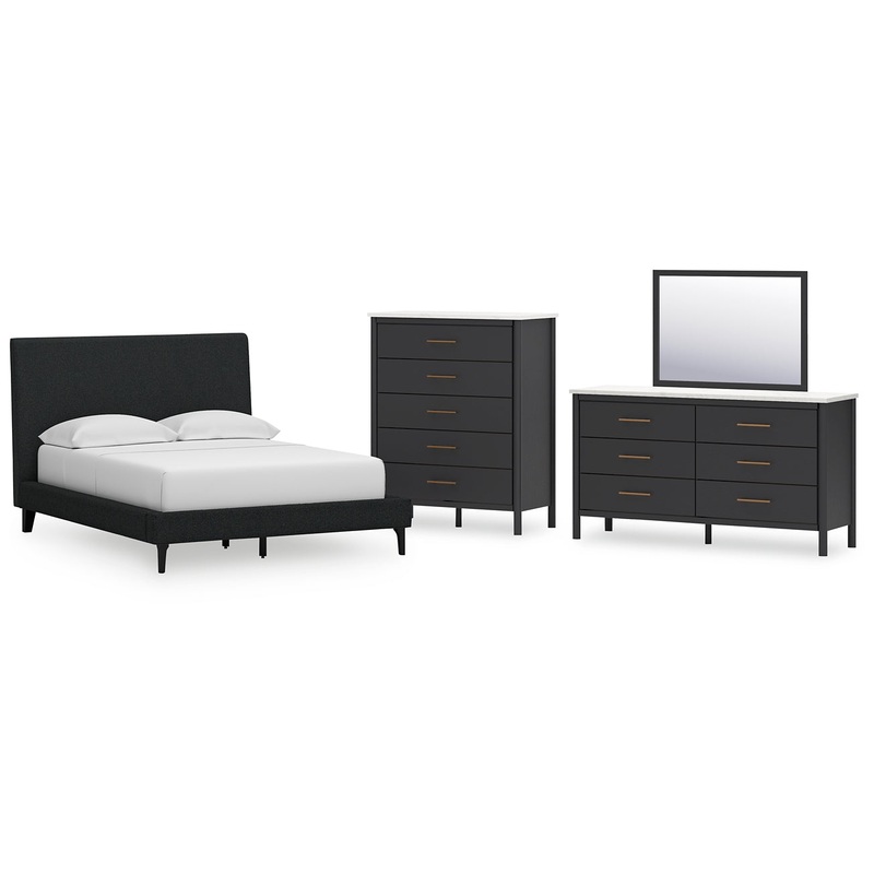 Cadmori Full Upholstered Bed with Mirrored Dresser and Chest