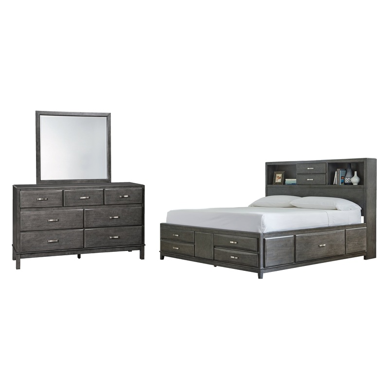 Contemporary style shapes up beautifully with designer elements evident from every angle in this bedroom set. Crafted with quality, contoured surfaces disguise ample storage options. Sporting a distinctive weathered gray finish, this set is the epitome of casual elegance.