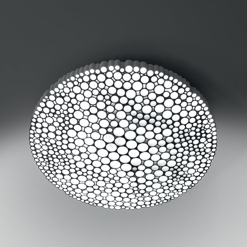 The Calipso Wall/Ceiling Light from Artemide creates a magical lighting experience that is both aesthetically and optically pleasing. The unique honeycomb grill produces an impure geometry exhibiting the irregular beauty of nature, resulting in an organic