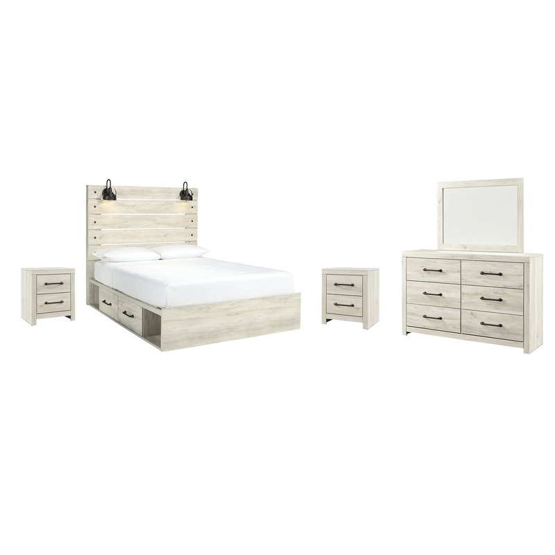 Cambeck Queen Panel Bed with 2 Storage Drawers with Mirrored Dresser and 2 Nightstands