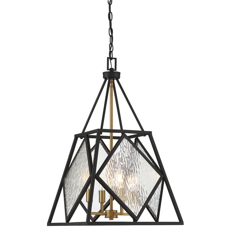 The aesthetic appeal of geometry and a fashionable two-tone finish make the Capella Collection a stand-out in any room. Measuring 28″ x 16″ wide, the four-light island fixture pairs an English Bronze finish with Warm Brass for a more traditional look. The clear water glass panels decoratively diffuse the light from four 60-watt candelabra bulbs.