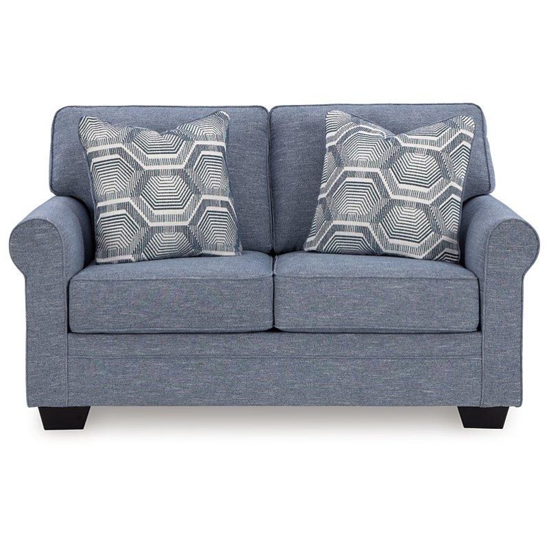 This loveseat is defined by comfort, convenience and classic style. Soft to the touch and stain-resistant, the family-friendly Next-Gen Nuvella fabric is easy to maintain. And you'll love the universal appeal of its denim-inspired hue. With roll arms addin