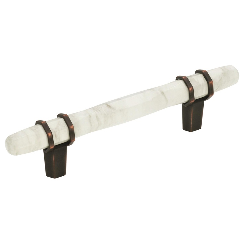The Amerock BP36648MWORB Carrione 3-3/4 in (96 mm) Center-to-Center Pull is finished in Marble White/Oil-Rubbed Bronze. From the winding bed of Italy's Carrione River comes the coveted carrara marble. Crafted by hand and balancing timeless beauty with clea