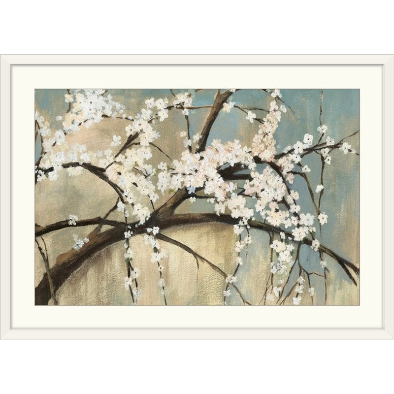 Infuse your living space with a serene, relaxed vibe with this painting print on canvas. Titled Osaka, it depicts a branch, heavy with white blossoms against a pale greenish-blue background. We love the impressionistic style of this rectangular print that gives it a dreamy, contemplative feel. Whats more, it is available in a range of sizes, so youre sure to find the one that best fits your space. This print comes as wrapped canvas or framed and is ready to hang with all included hardware. Andover Mills Format: White Frame, Size: 32″ H x 44″ W x 1″ D