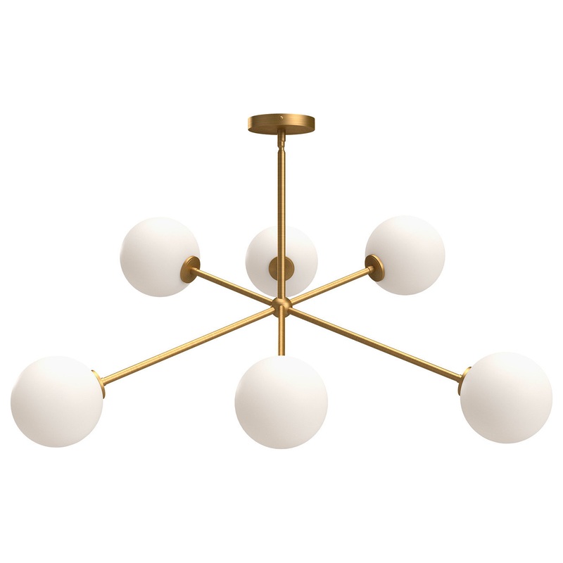 -Mid-century shapes meet modern boho flair in the Cassia collection. With Sputnik-style -Shapes dancing with Opal Matte glass globes, this collection is two parts class, one part sass. -Available in two finishes to match the mood of your space, Matte Black