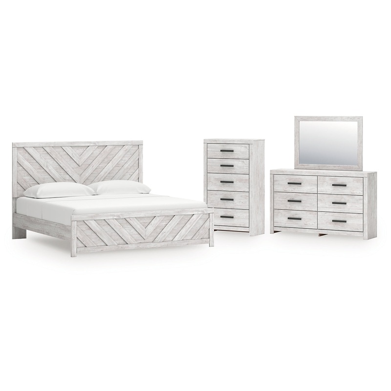 Cayboni King Panel Bed with Mirrored Dresser and Chest