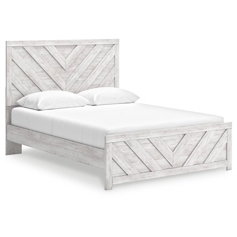 Charmingly designed, this queen panel bed embraces the aesthetics of countryside living and repurposes them for modern settings. Its whitewash paint, replicating the wear and tear of time, appeals to your love of vintage character. And a chic chevron pattern on the headboard and footboard keeps your bedroom effortlessly on trend.