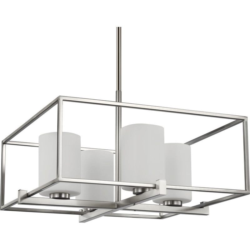 Stick with simple geometric forms and clean crisp lines with this modern wall bracket. Beautiful opal glass shades visually calm the sharp edges of the boxy frame in a masterful stroke of design excellence. The frame is coated in a classic brushed nickel f
