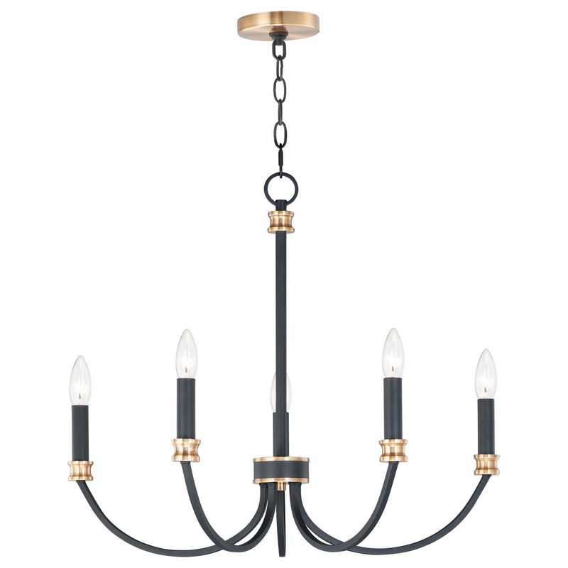 A lovely candelabra style collection with chic detailing. Finished in a rich combination of Black with Antique Brass accents these fixtures provide an updated look to a classic exposed candelabra style. -Number of Bulbs: 5 -Bulb Type: Candelabra -Wattage: