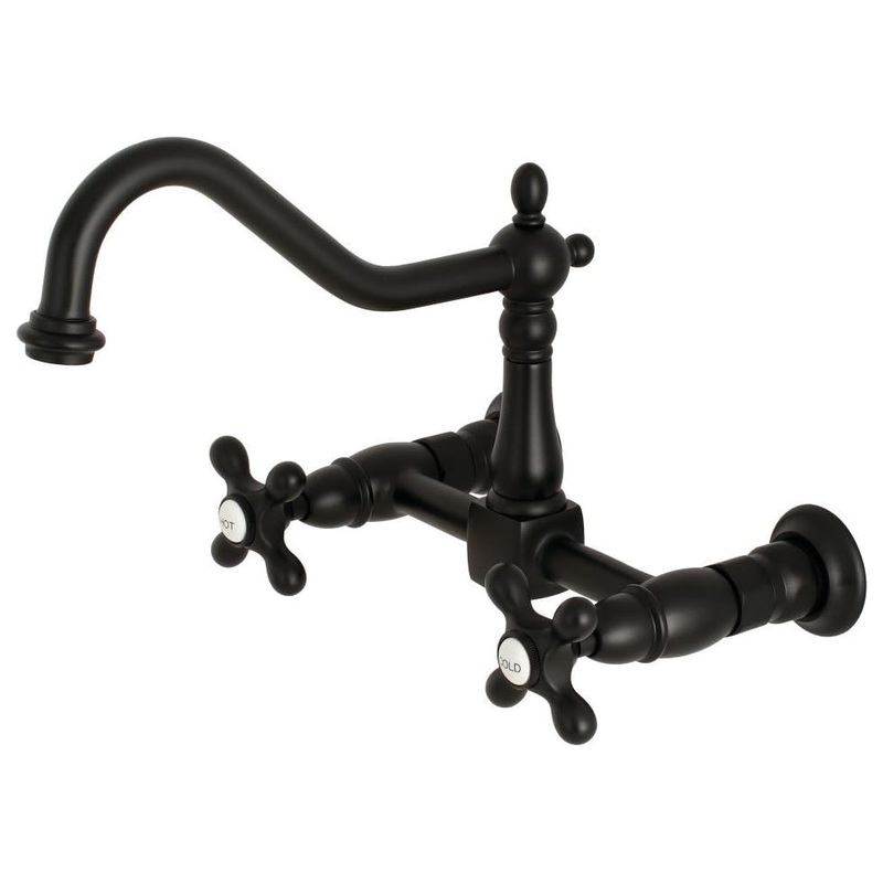-Solid brass construction -Drip-free ceramic disc cartridge -Wall mount 8" center 2-hole installation -1.8 GPM/6.8 LPM spout flow rate at 60 PSI -1/2"-14 NPT female inlet connection -9-1/16" spout reach; 12-1/4" from wall -8-3/16" spout heightProduct ID199