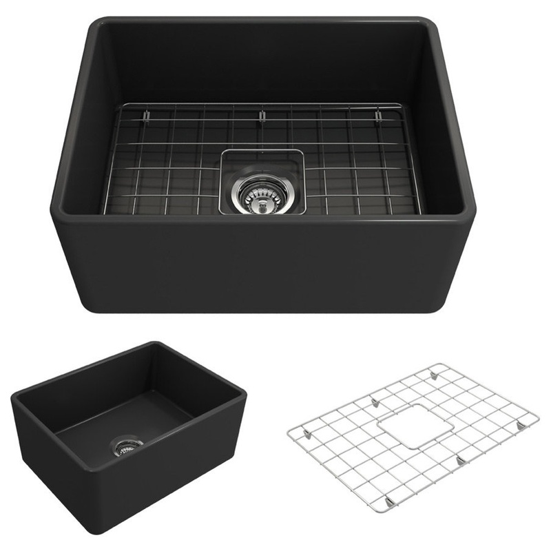 Classico Farmhouse Kitchen Sink With Grid and Strainer, 24″ – Contemporary – Kitchen Sinks – by BOCCHI USA-1137-020-0120