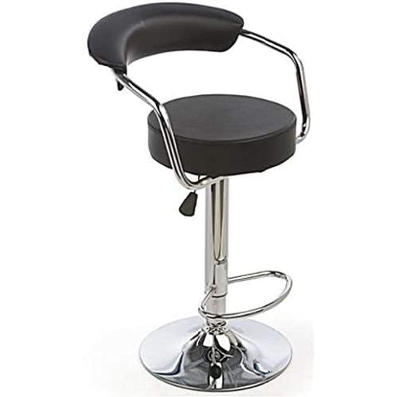 Comfortable Chrome Bar stool with Backrestis in modern design with high sitting comfort thanks to well-padded seats. Adjustable in height, handle for lifting and lowering. Stands firmly due to wide foot. Ergonomically rounded edges and corners. Covered with easy to clean, durable synthetic leather.