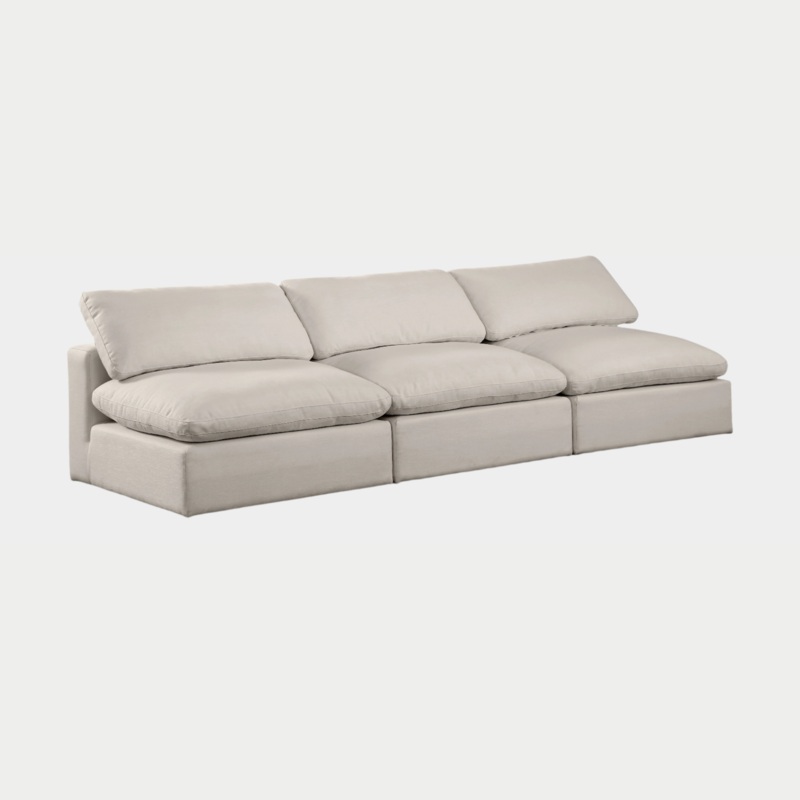 Give your space a whole new look with this white Comfy linen textured fabric sofa. This handsome sofa fits nicely with other items in the Comfy collection and is a versatile seating option designed for adaptability, comfort and style. Wrapped in rich white durable linen textured fabric upholstery, this sofa offers a plush embrace of overstuffed down feather cushions, carefully crafted to deliver the highest level of comfort. The perfect seat for creating an oasis for relaxation, this sofa has thick foam surrounding its frame for added support and coziness.