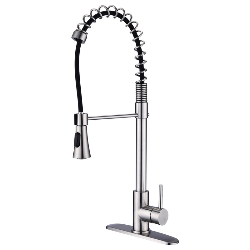 The Spring Pull Down Faucet is constructed of durable materials to meet all of your kitchen’s needs. Stainless steel construction provides durability, making this product a reliable selection for a busy home. 360 Degree Swivel Pull Down Sprayer provide a full range of motion so you can wash your dishes from any angle .The sleek design also helps to bring a professional look to your kitchen.