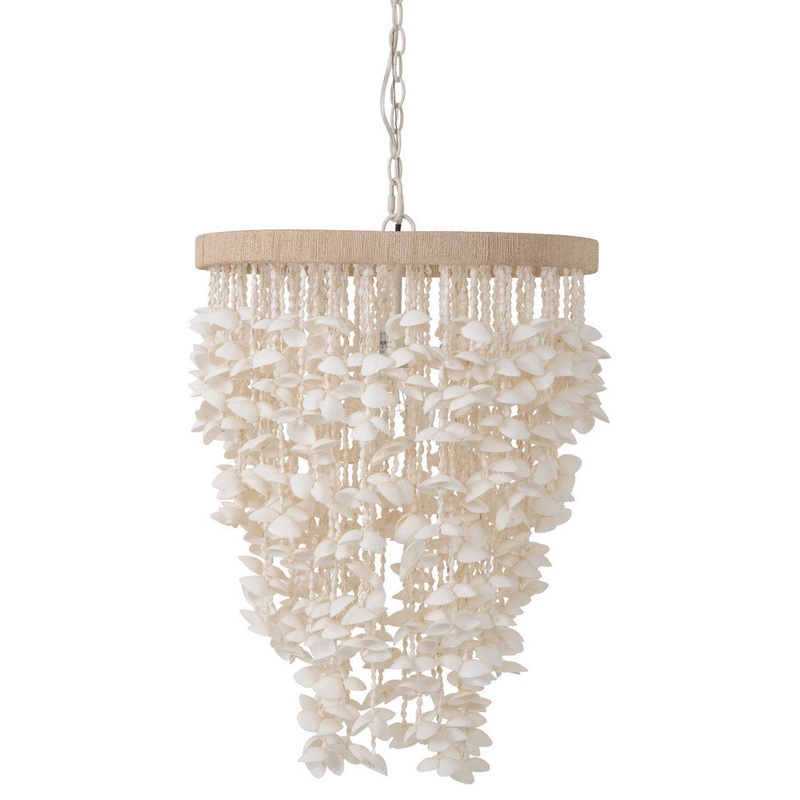 -Wipe clean with damp cloth or use dusterInvite a wee bit of the ocean into your home with this beautiful cone clamrose shell chandelier! The delicate white strands of seashells add texture, warmth and luminous rays of soft light in whatever room you grace these shell lights in.
