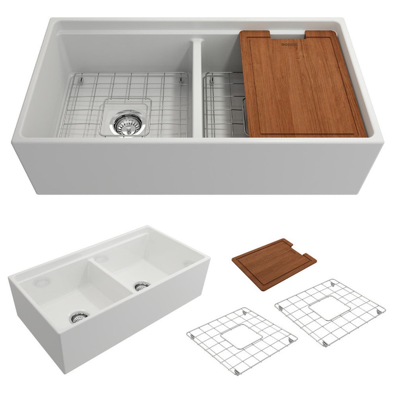BOCCHI Farmhouse Sinks bring back the ultimate material to your kitchen. Fireclay, a 100% natural organic and recyclable material used by craftsman for centuries to create timeless appliances has now returned to your kitchen. With the firing in our kilns u