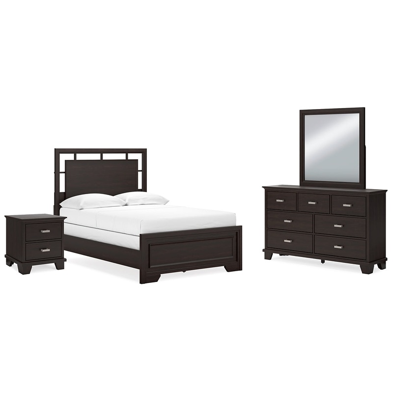 Covetown Full Panel Bed with Mirrored Dresser and Nightstand