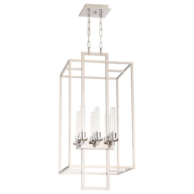 The sparse structure of the Cubic light fixture marries a rustic, lantern-style with a streamlined industrial look. The metal finish with contrasting corner accents give the Cubic openness that allows the candle-inspired bulbs to be viewed without obstruction.