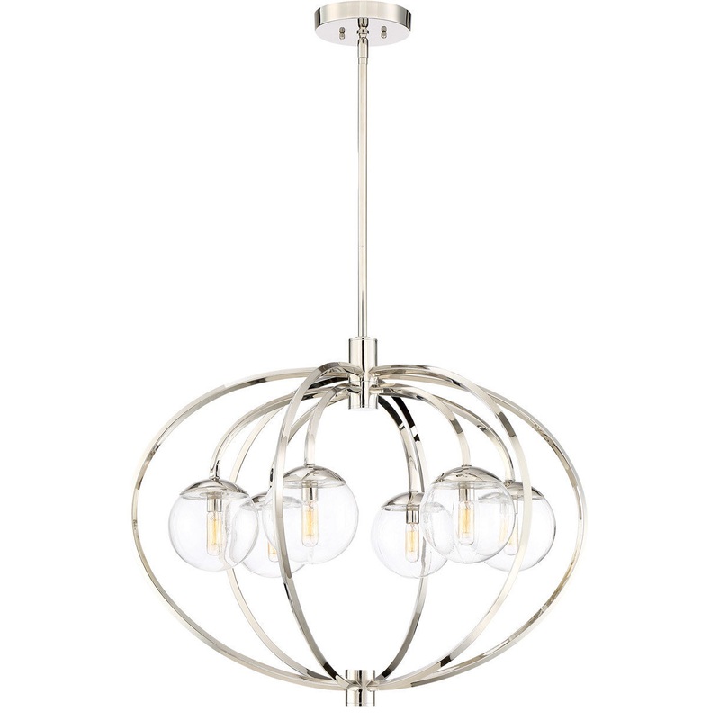 Take your decor to new heights with our eclectic, orb-shaped Piltz light fixture. Five bulbs housed within transparent glass Spheres and Suspended from above, this fixture is Suggestive of a Solar configuration that will revolutionize the look of your inte
