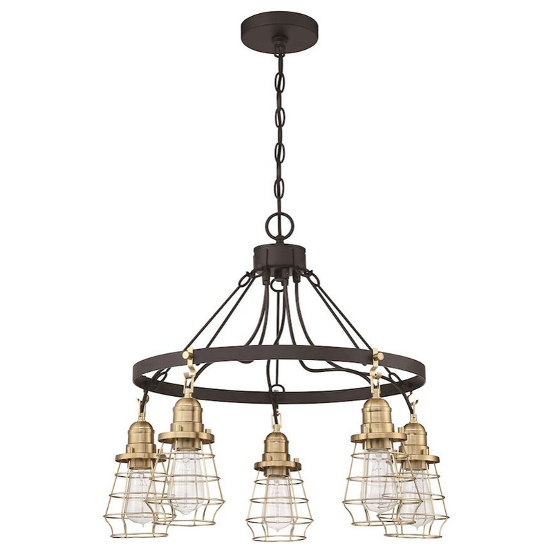 Craftmade Thatcher 5 Light Down Chandelier, Black/Brass Cages – Industrial – Chandeliers – by Lights Online