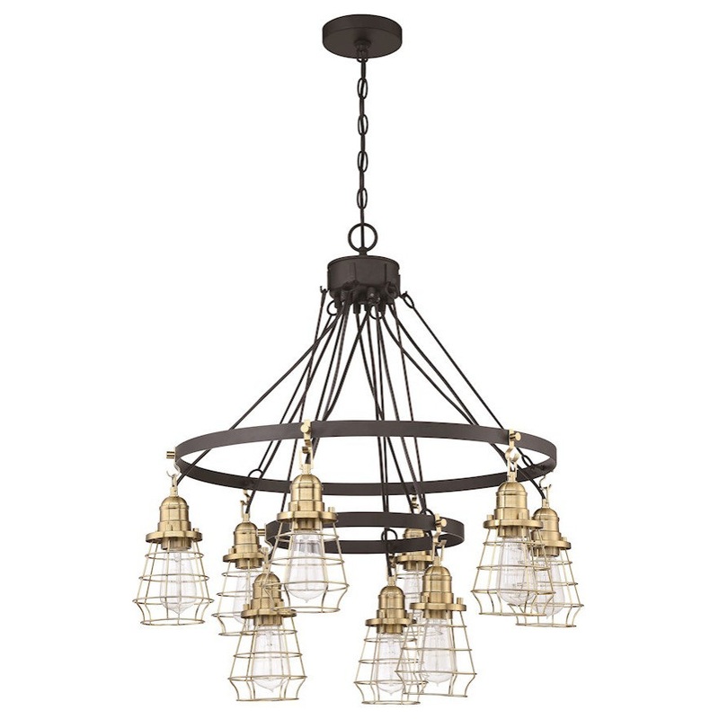 Craftmade Thatcher 9 Light Down Chandelier, Black/Brass Cages – Industrial – Chandeliers – by ShopFreely