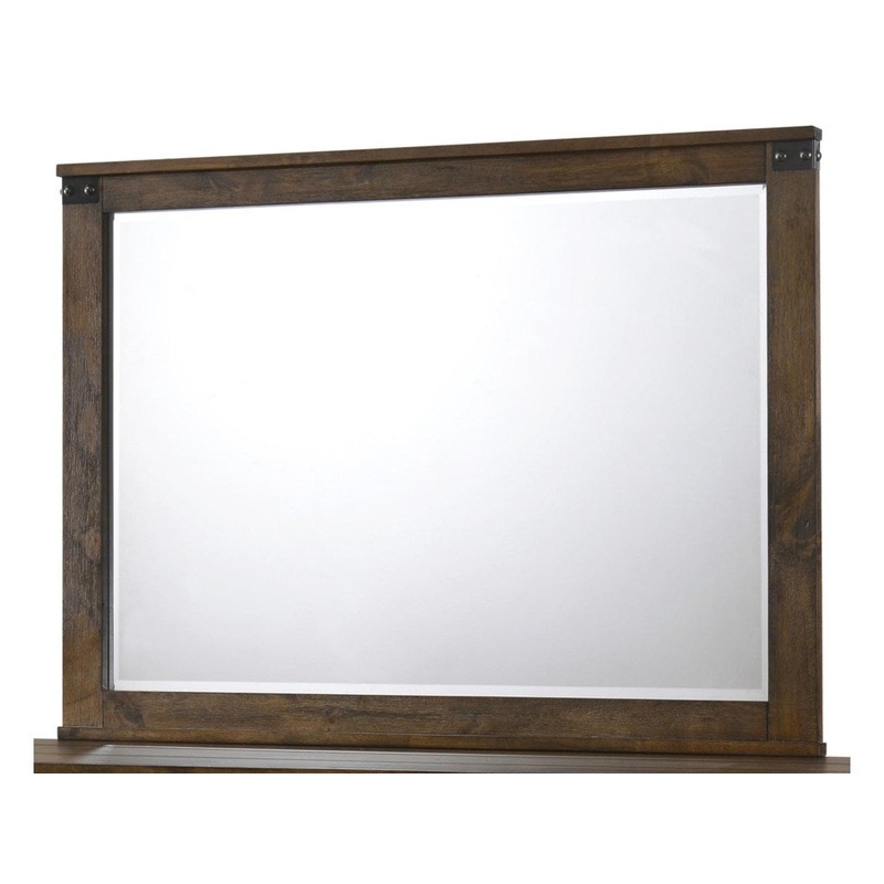 Crown Mark Furniture Curtis Mirror in Rustic B4800-11. The Curtis Mirror by Crown Mark features a Rustic finish and a simple wood frame. It is a perfect match with the dresser in the bedroom.