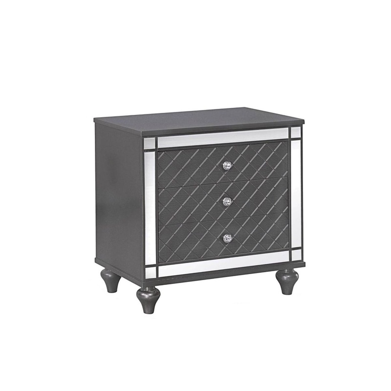 Crown Mark Refino Nightstand in Gray B1670-2. This Refino nightstand from Crown Mark combines style and utility. This piece has an elegant look that will enhance any bedroom space.