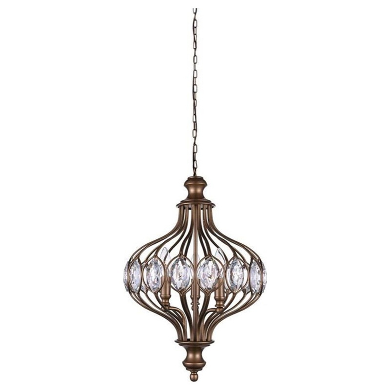 Named after a star with a stellar luminosity, the Altair 6 Light Chandelier displays the same characteristic. Finished in antique bronze, this 19 inch chandelier features a metal openwork shade accented by faceted clear crystals. The traditional yet whimsi