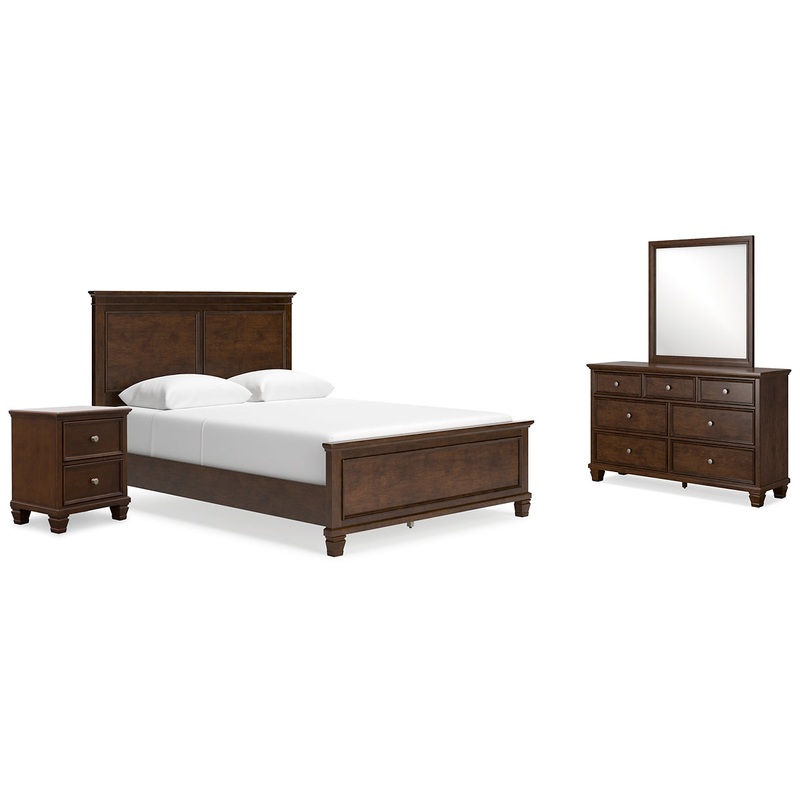 Danabrin Queen Panel Bed with Mirrored Dresser and Nightstand